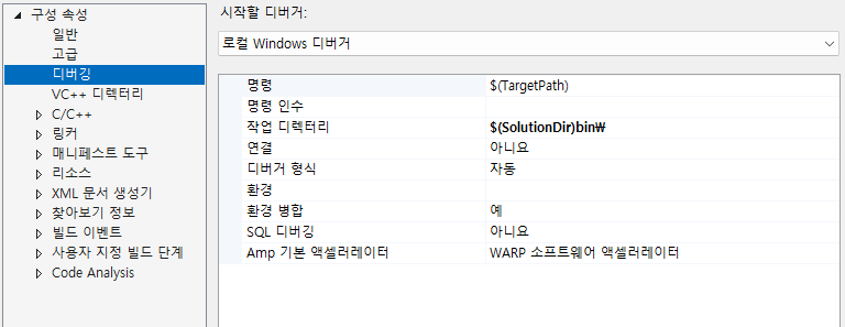- 속성 → 일반 → 대상 이름 → game_D.exe (디버그 모드에서 실행할 EXE 이름)