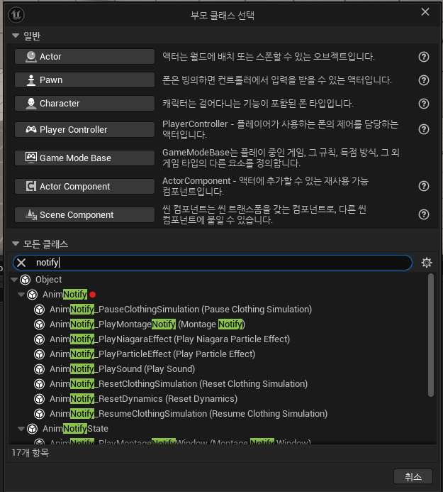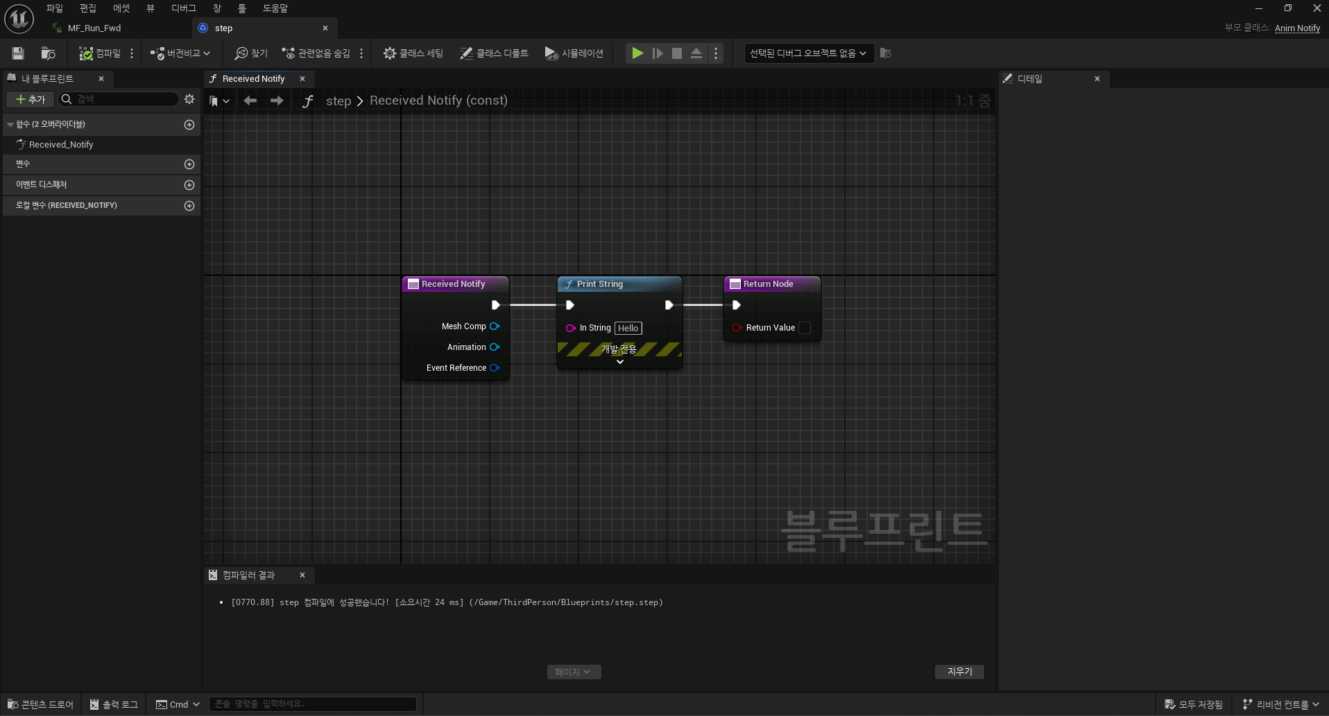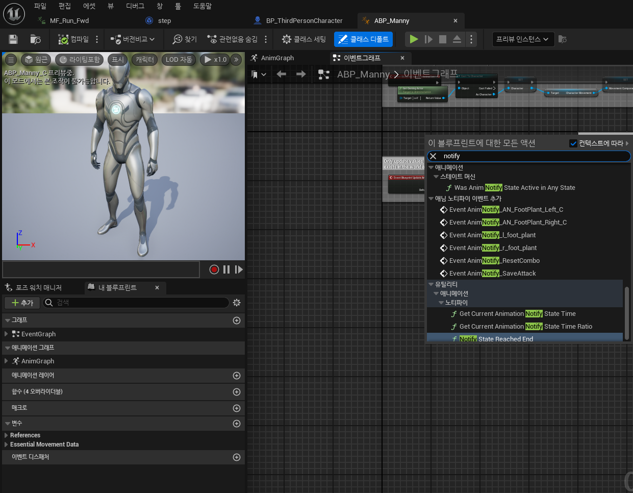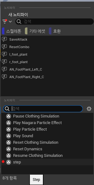 - 애니메이션 그래프에서 Notify를 검색하게 되면 자동으로 이벤트가 생성되는것을 확인할 수 있다.