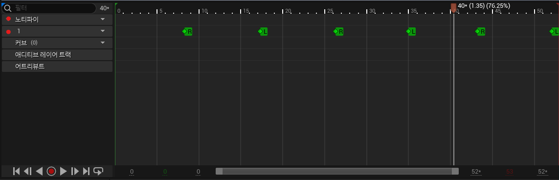- 애니메이션 시퀀스 우측을 보게 되면 노티파이라고 존재