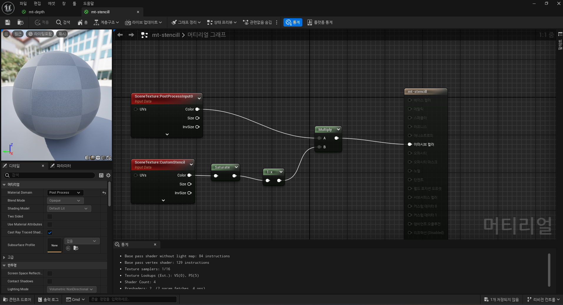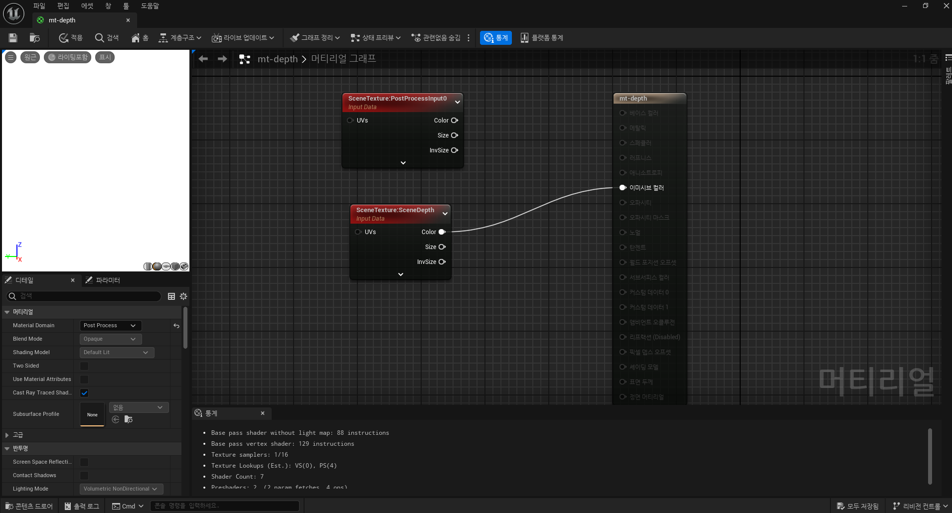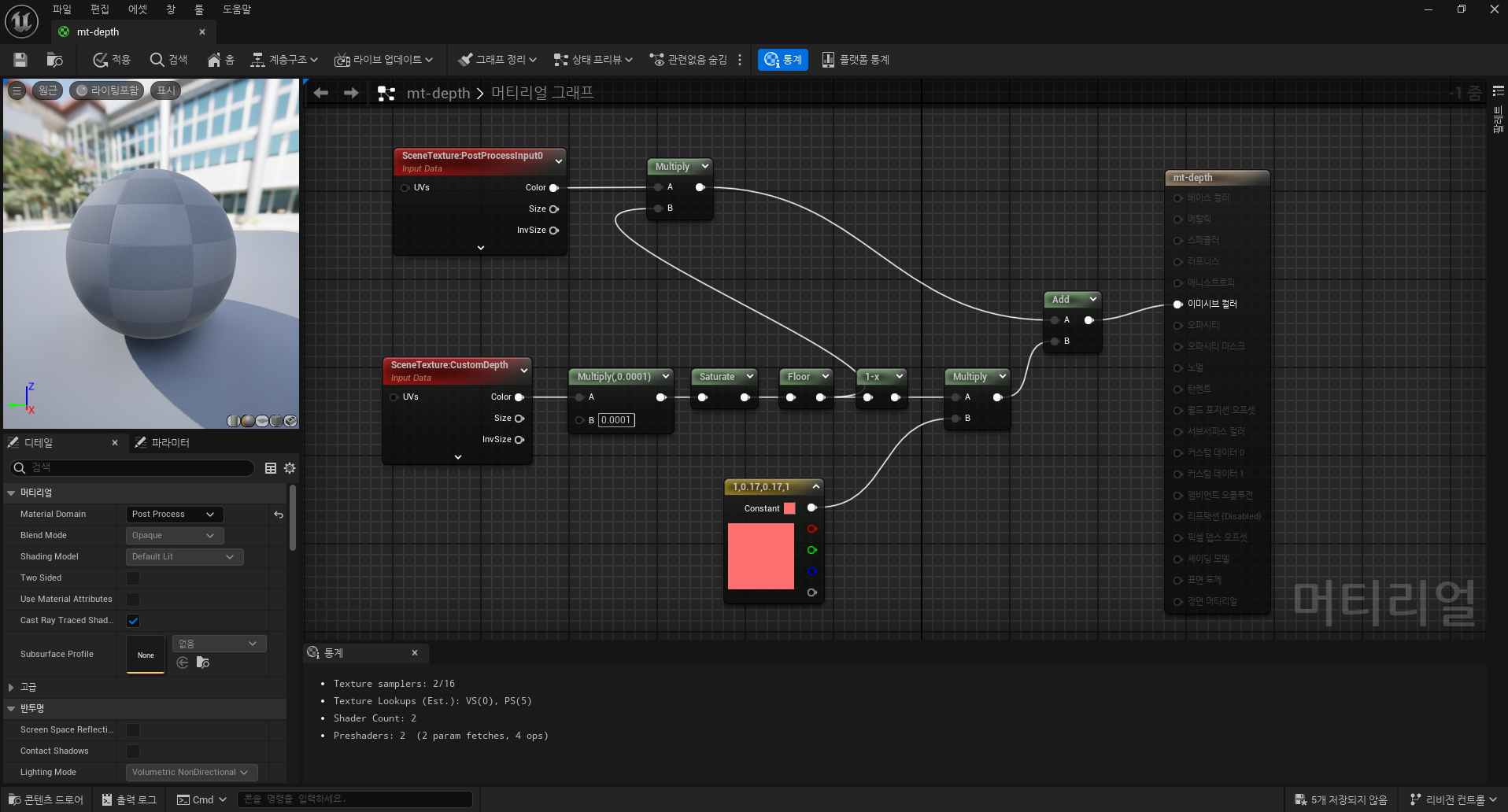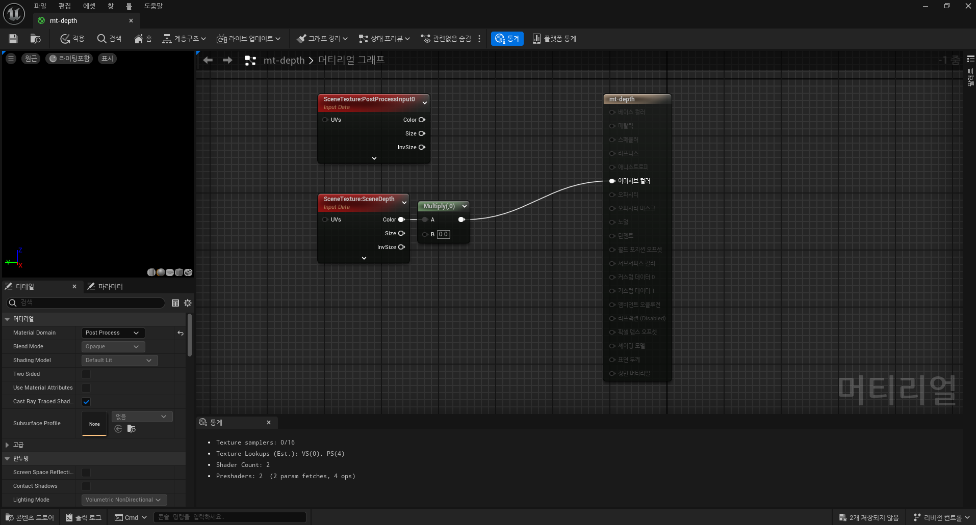 오늘은 포스트 프로세스의 뎁스관련 수업을 들었다.